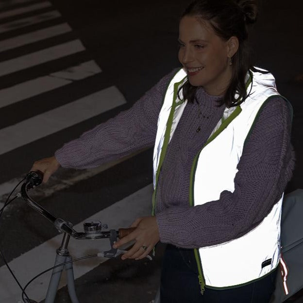 Crafted from reflective, water-repellent fabric, this hoodie ensures you stay visible and dry. The contrasting fluorescent neon yellow and green details elevate this hi-vis vest, making it a standout piece.