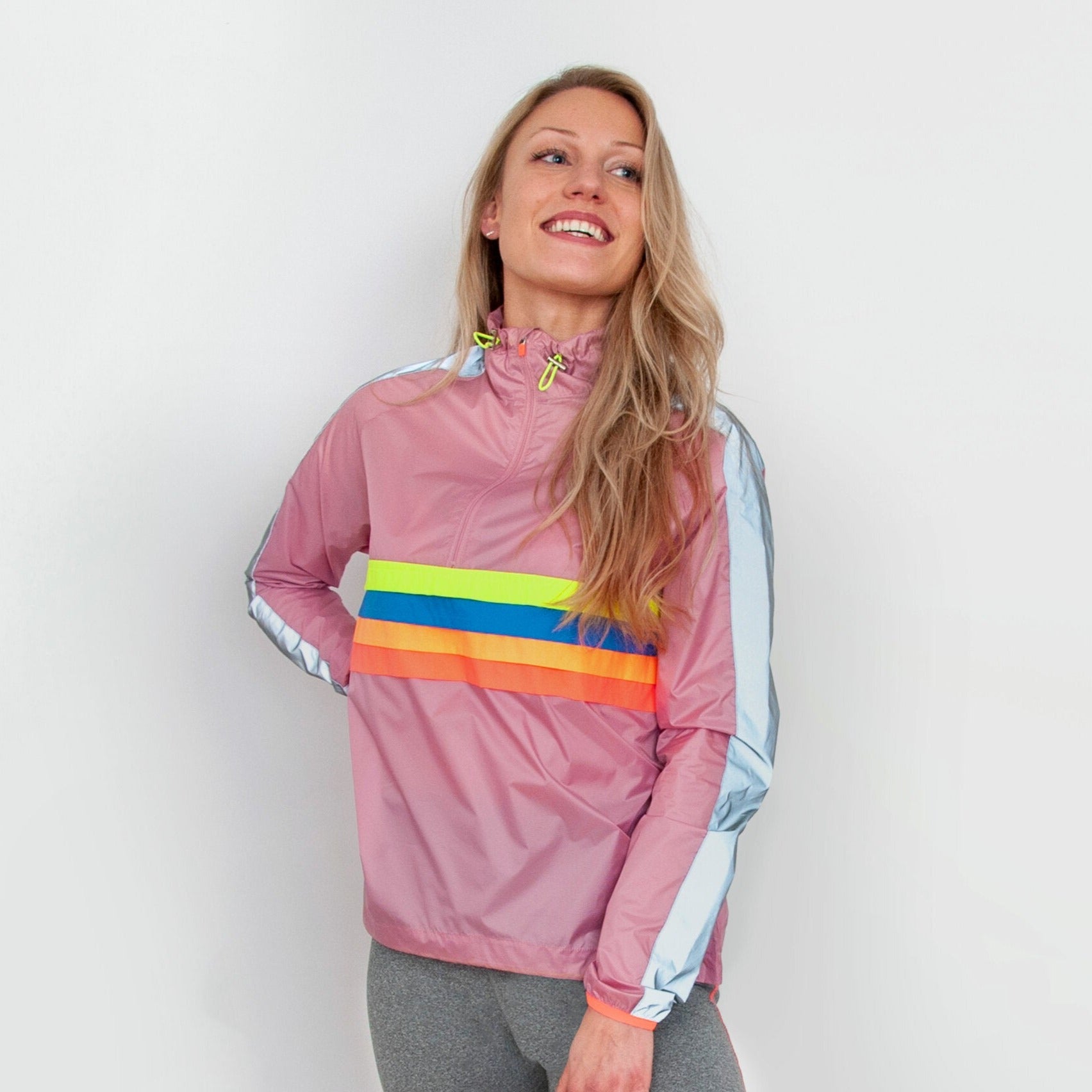 Stay visible day and night with this ultra-light, ultra-bright waterproof running jacket. This pink showstopper blocks rain and wind, eliminating any excuse to skip a workout. Neon elastic hems on the sleeves keep the cold wind and rain out, ensuring maximum comfort.